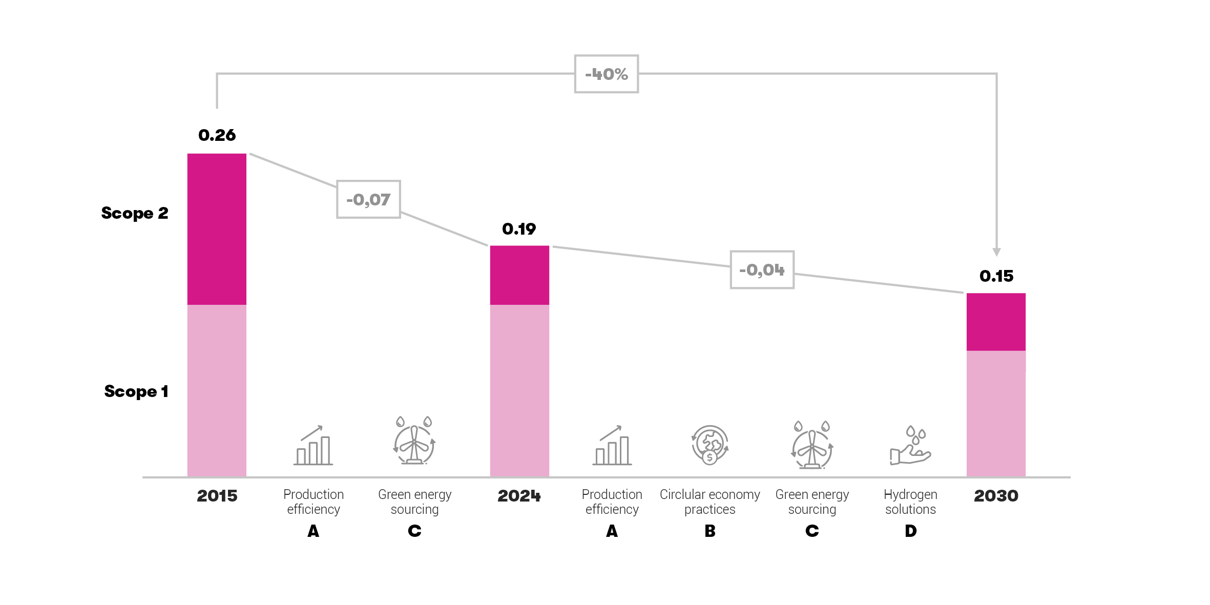 [2015-2030; tCO2/ t finished product]